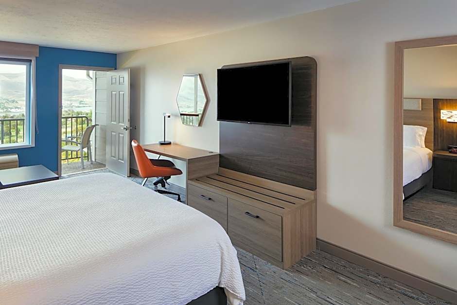 Offering free Wi-Fi, this hearing accessible room includes a roll in shower, a cable satellite TV, a DVD player, a desk, a seating area, a microwave and a refrigerator.